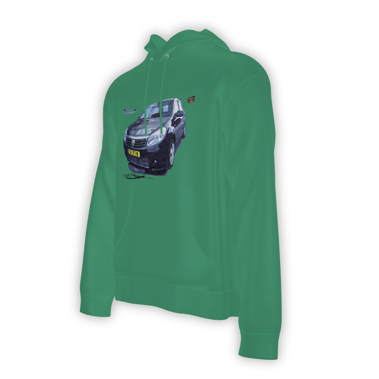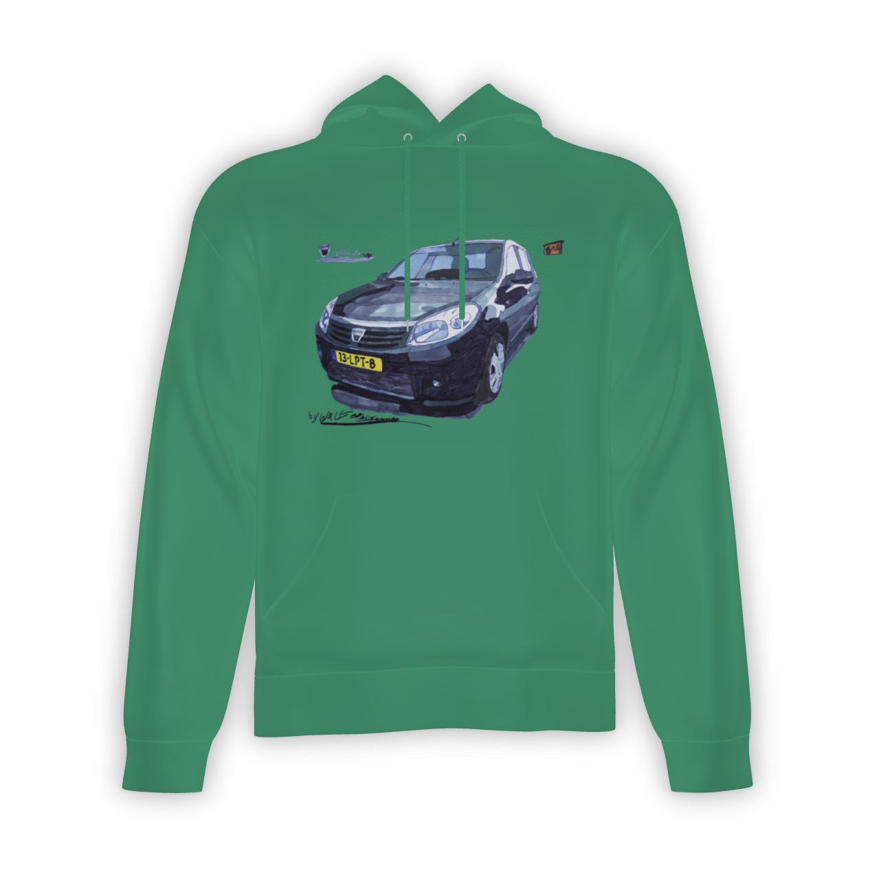 Laat je passie voor de Dacia Sandero en de kleur groen zien met deze unieke hoodie!